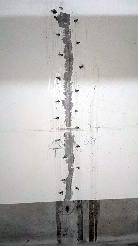 Auch an Ortbetonteilen wie z.B. Sohle, Wand und Decke können Durchfeuchtungen durch Risse auftreten (Schwundrisse, Setzrisse und Verdichtungsfehler).